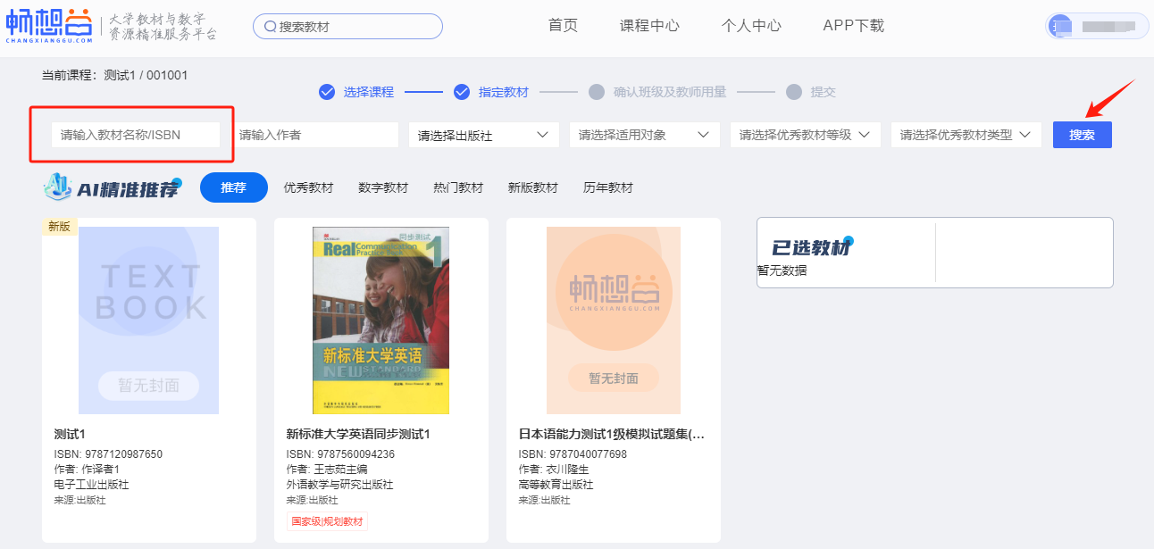 4.输入备选教材“ISBN号”(唯一识别符)进行检索,不要搜索教材名称。